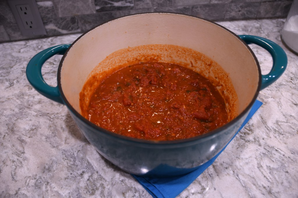 Add the pasta to the sauce. There will be a lot of sauce compared to the pasta.