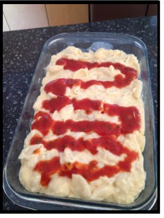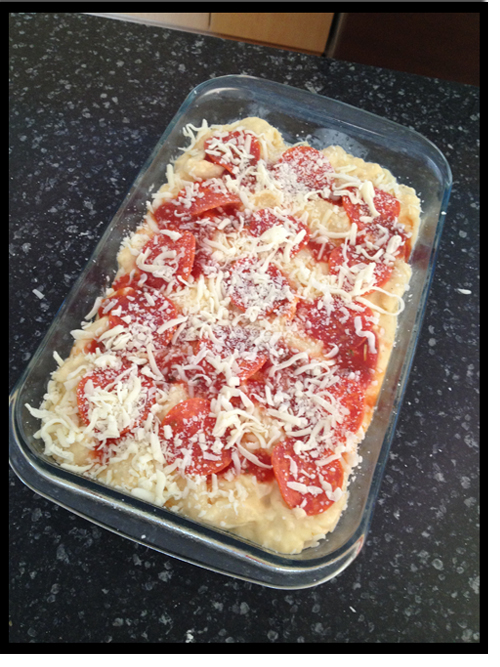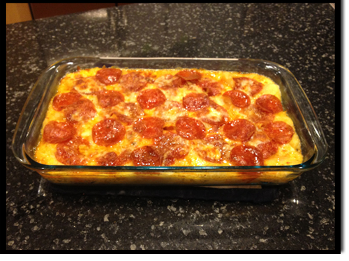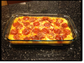 We recently made a tasty discovery with our mac n cheese. Instead of topping with bread crumbs, we started topping with pepperoni, a little pizza sauce, and mozzarella cheese. Yummy!