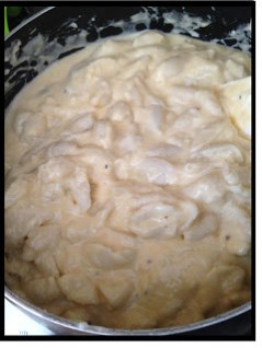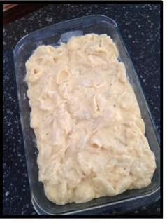 Add to the cheese sauce. Fold the cauliflower and pasta into the cheese sauce. Pour the mixture into the baking dish.