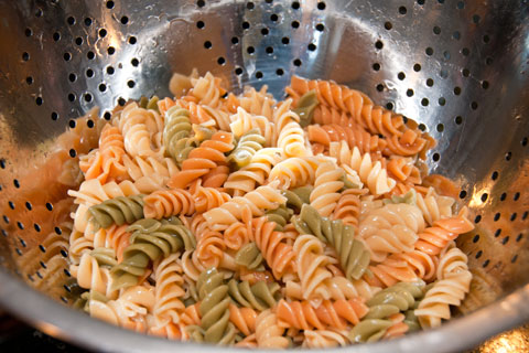 Rinsing the pasta after it’s drained helps to cool it down quickly and to get rid of the startch.