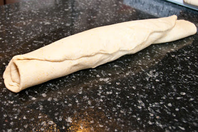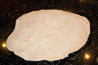 The crust is not a normal pizza crust.  It includes corn meal and you fold in a layer of butter to give it a flaky texture.