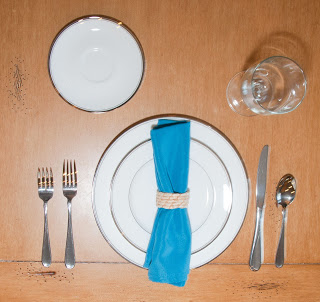This week’s topic is using your napkin.  In a place setting, the napkin is placed to the left of the forks, under the forks, or in the center of the dinner plate.  It can be either folded or with a napkin ring around it.