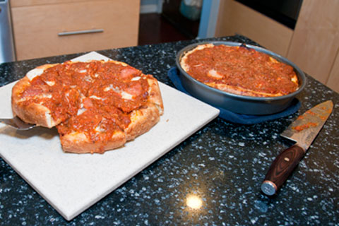 While there are a few pizzerias outside of Chicago where you can get the stuff, I wanted to recreate the experience at home.  I found a recipe on carnaldish.com, which totally fits the bill.