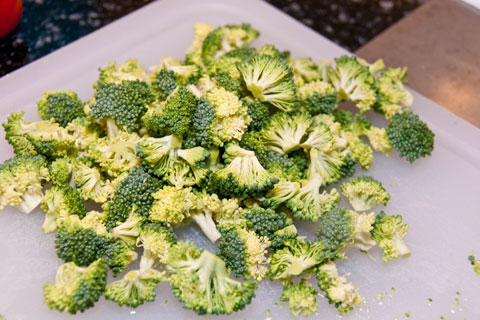 While your pasta is cooking, cut up your broccoli.  The smaller the florets, the better your salad will be.