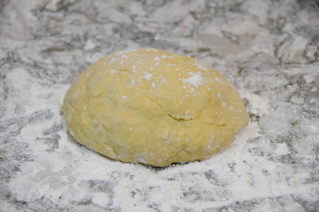 When you are finished with that piece, coat both sides of the dough in flour to keep it from sticking to itself and set it aside while you roll out the remaining pieces of dough.